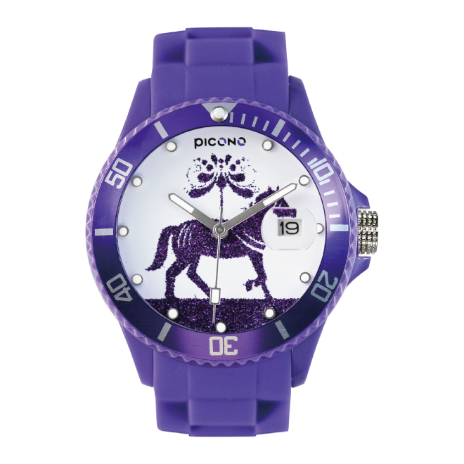 We use Japenese movement with plastic case and rubber band which are perfect for excercicing and casual wear. Using fearless Purple to show the joy from adventures, we draw outlines of animals and facilities in the theme park, with luminous on the hands, to recreate the pure joy in your memory during your childhood.